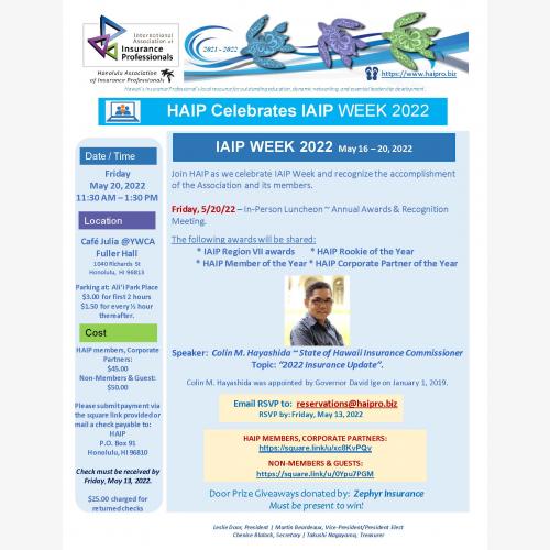 In-Person HAIP Luncheon Annual Awards & Recognition: IAIP Week 2022