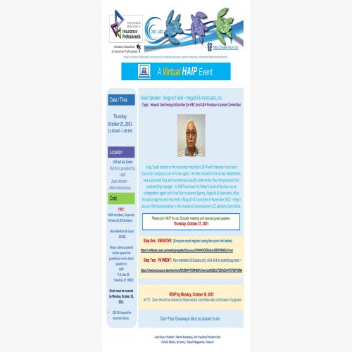 October Membership Meeting: Hawaii Continuing Education for P&C.L&H Producer License Committee